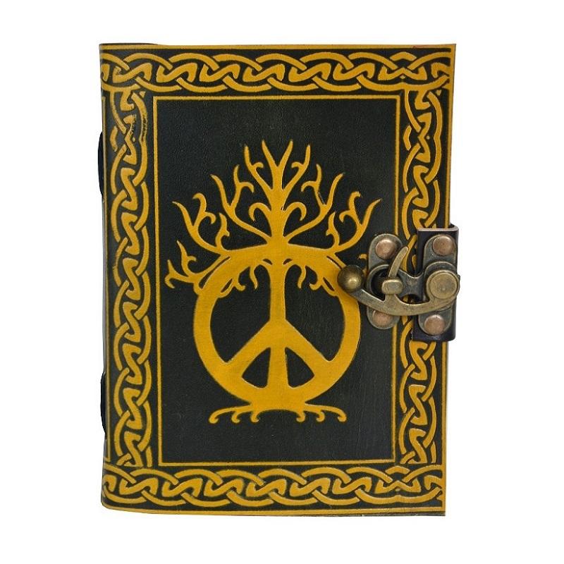 Diario in pelle goffrata fatto a mano Peace Of Sign Paper giallo celtico con diario in pelle nera quaderno da viaggio in pelle