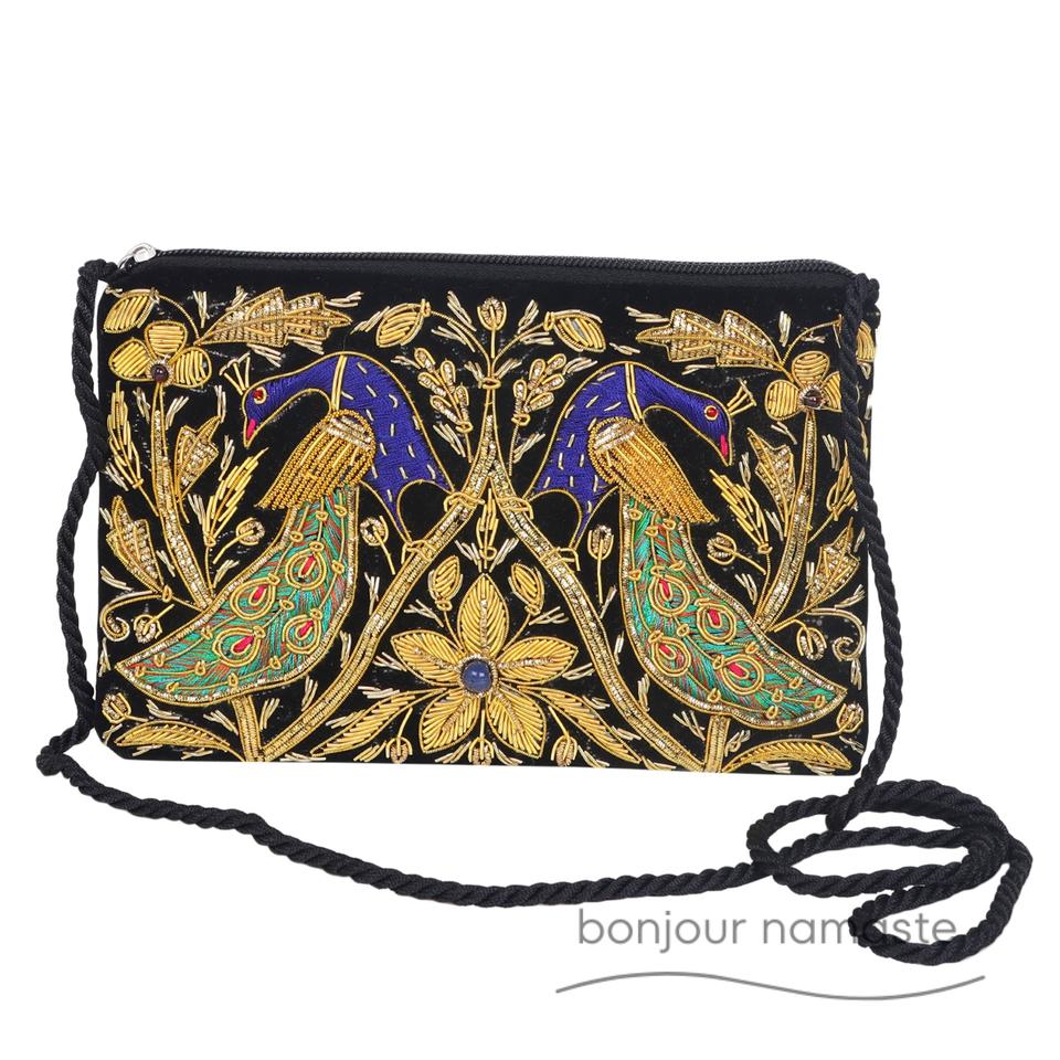 Borsa pavone ricamata a mano con motivi colorati e borsa a tracolla di perline artigianale-moda sostenibile