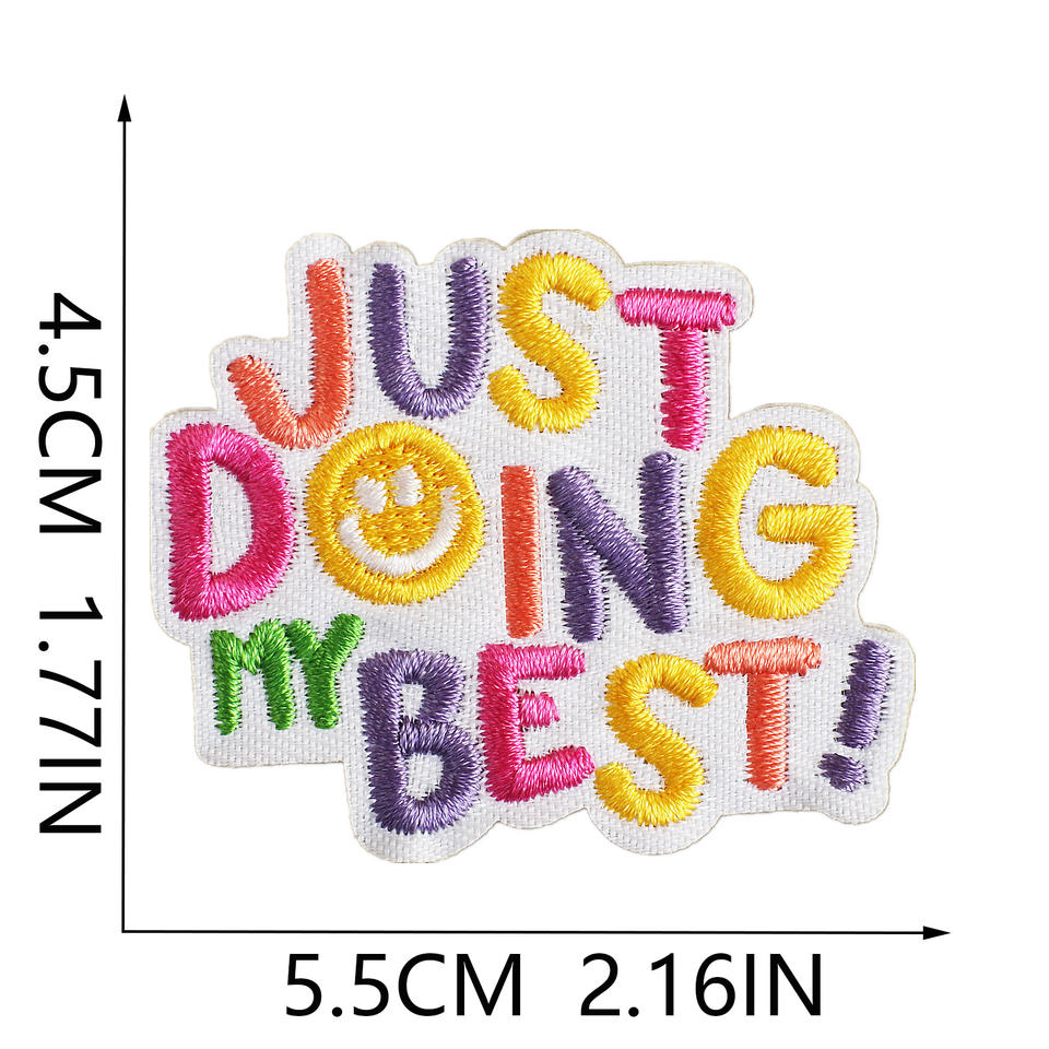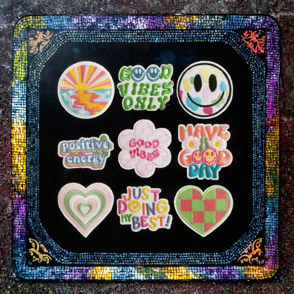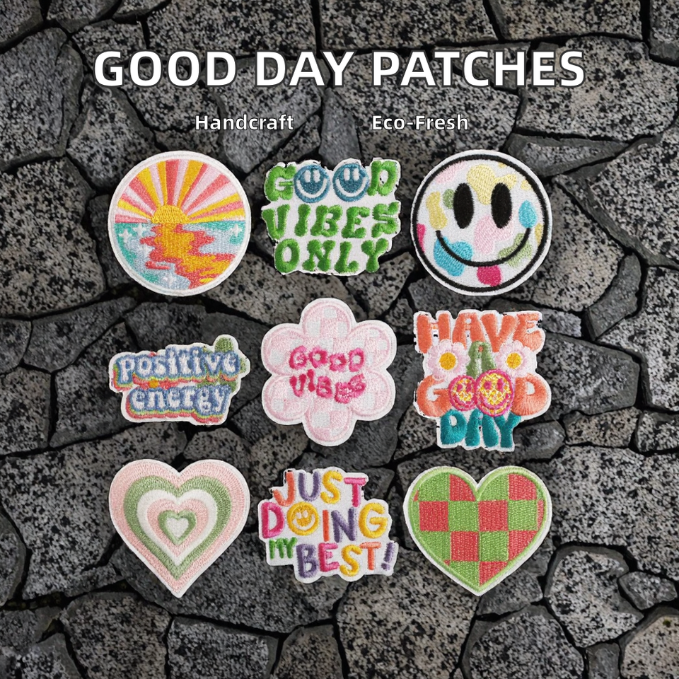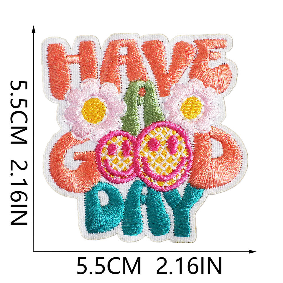 Toppe Rotonde Ricamate a Mano Termoadesive in Feltro Non Tessuto con Poliestere per Personalizzare Cappelli - Buona Giornata