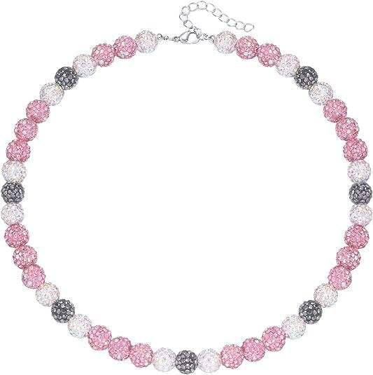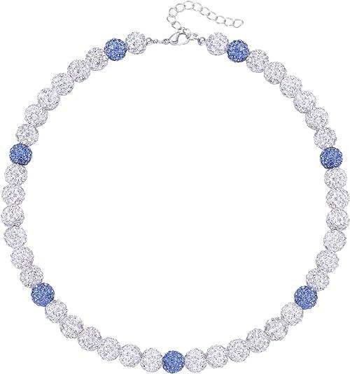 Handmade Fashion Beaded Necklace Unisex Rhinestone Baseball Inspired Beaded Choker Discoball Necklaces for Baseball Team Lovers