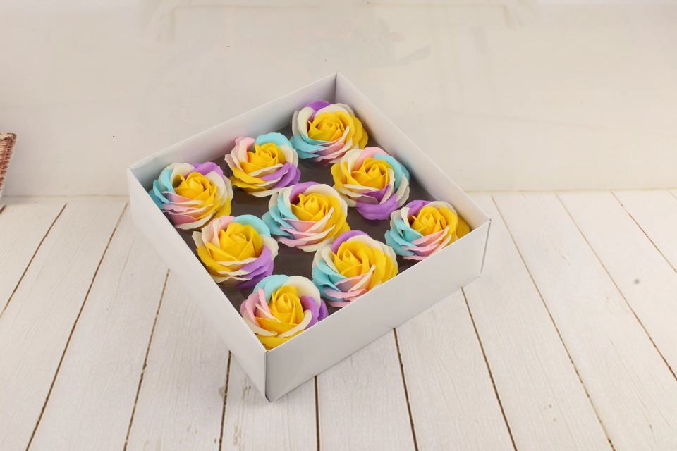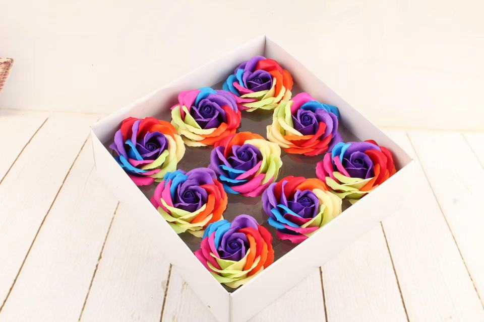 Fai da mano a cinque strati di rose colorate sapone blu testa fiore artificiale composizione fiorista decorazione di san valentino