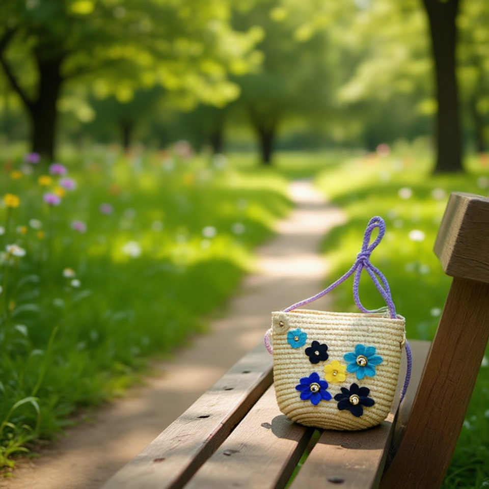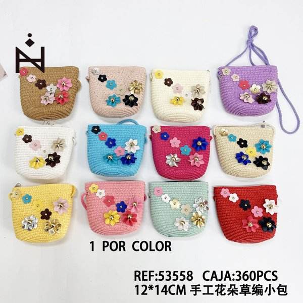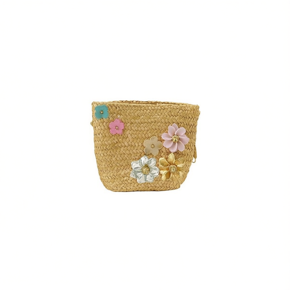 Borsa in paglia intrecciata a mano con fiori, 12x14 cm, mini borsa a tracolla da donna