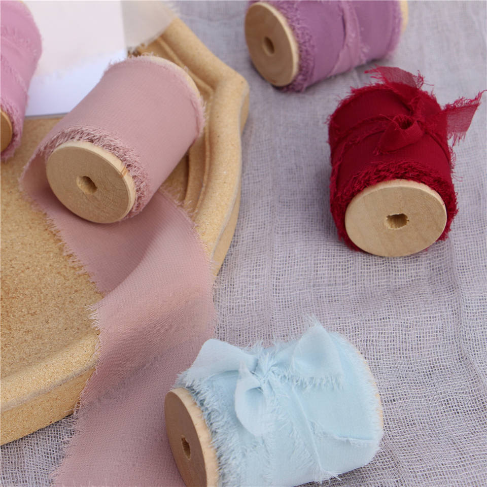 Nastro in Chiffon con bordi sfilacciati fatti a mano con bobina di legno nastro con frange per invito a nozze