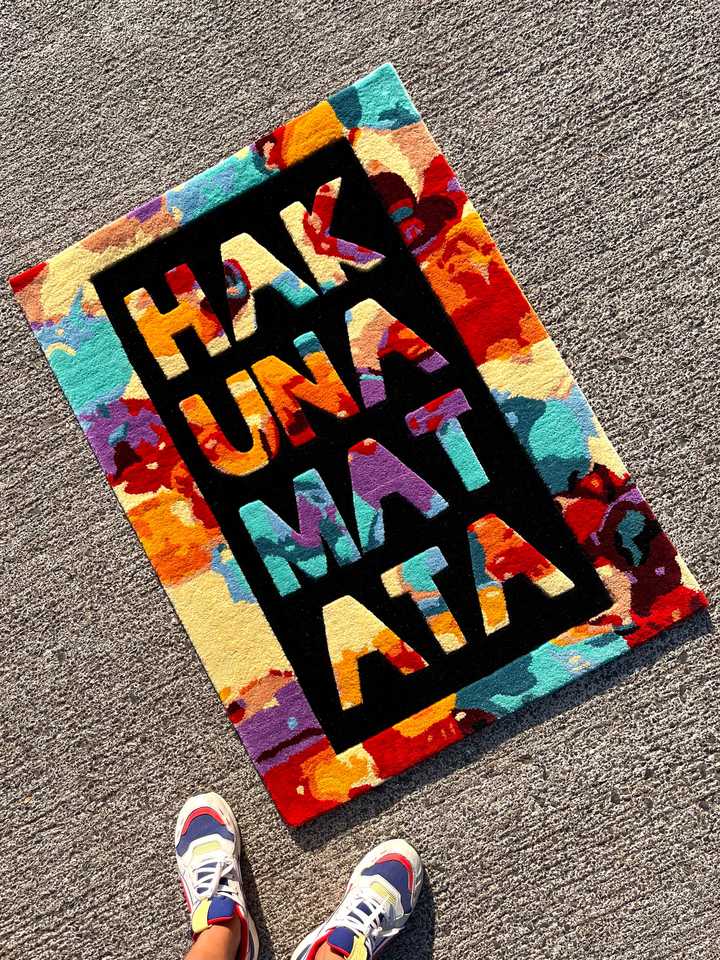 Fatto a mano Hakuna Matata 3D tappeto di lana trapuntato Logo personalizzato antiscivolo tappeto sfumato opzioni di colore per uso di esercizio soggiorno