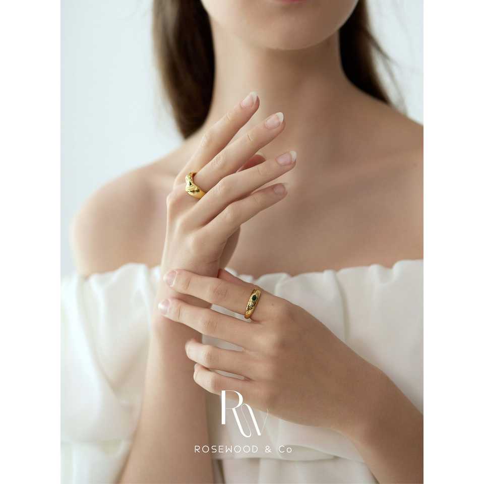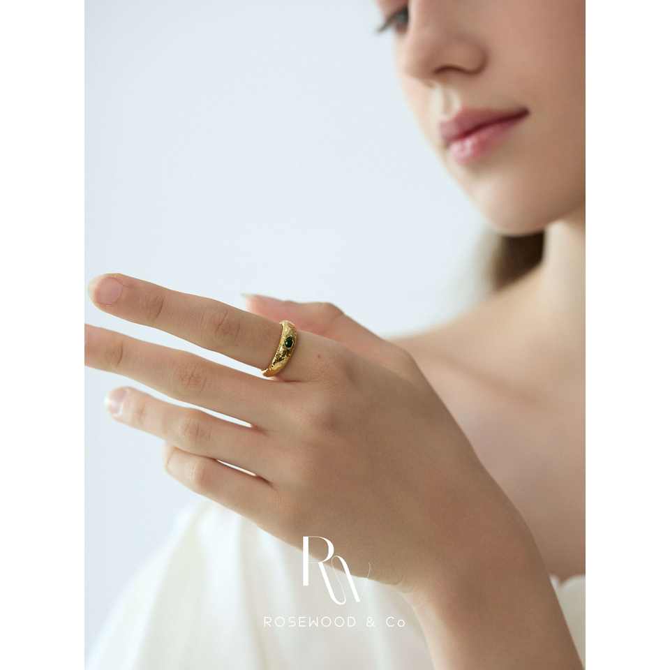 Anello a fascia in oro martellato fatto a mano, anti-ossidazione, con gemma verde, anello a sigillo con onda in lava dorata, in oro laminato con pietra tagliata