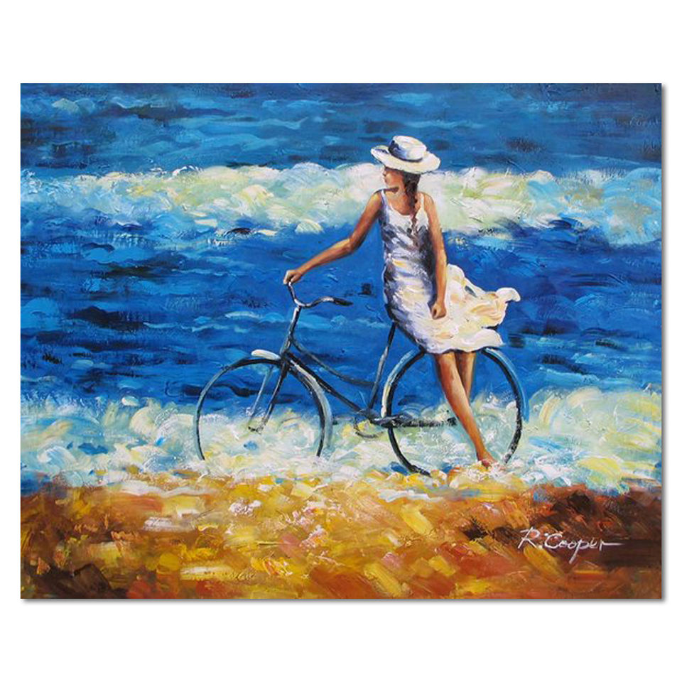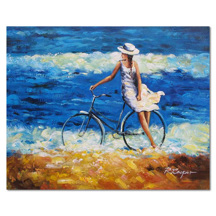 Product Name:Girl Riding Bike Abstract Beach Oil Painting for Living Room