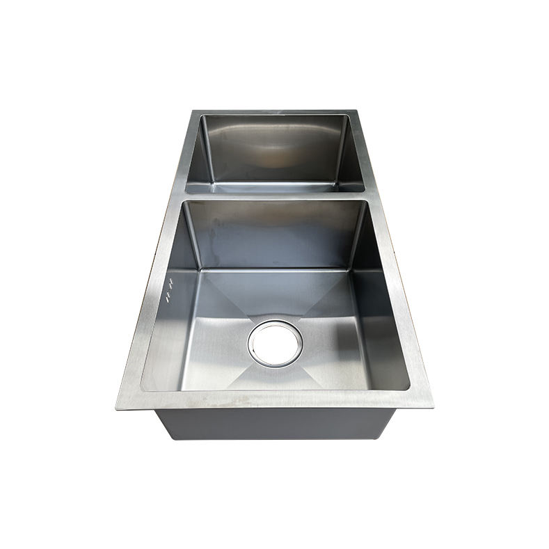 Handmade Kitchen Tubs with High Quality Faucet Stainless Steel Double Bowl Sink Customized Logo Drainage Hole