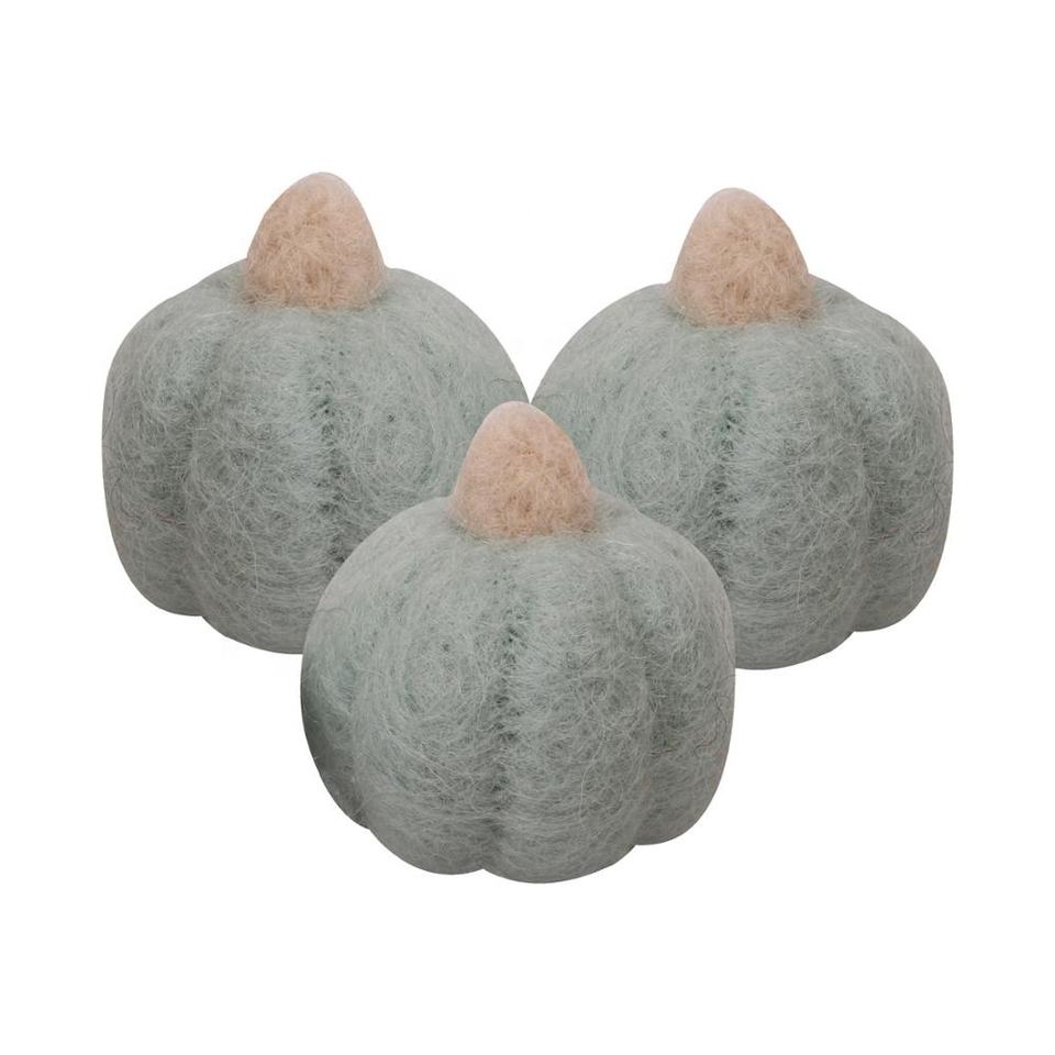 Handmade Light Blue 100% New Zealand Wool Needle Felted Pumpkin for Halloween Party Decorations