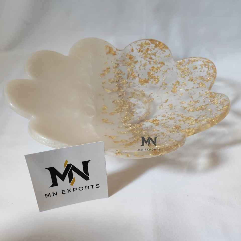 Ciotola di frutta in resina epossidica fatta a mano di design di lusso con fiocchi in lamina d'oro a forma di nuvola in stile angelo modello MN