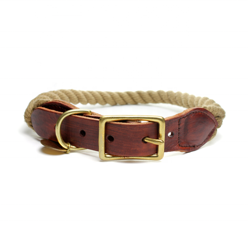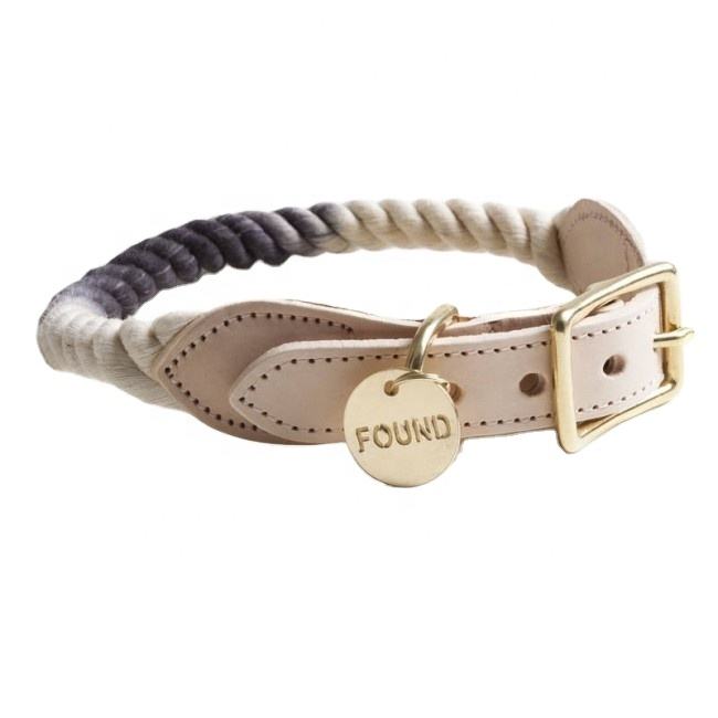 Handmade Luxury Dog Collar Cotton Rope Leather Accessory with Custom Design Pet Supplies for Dogs and Their Owners