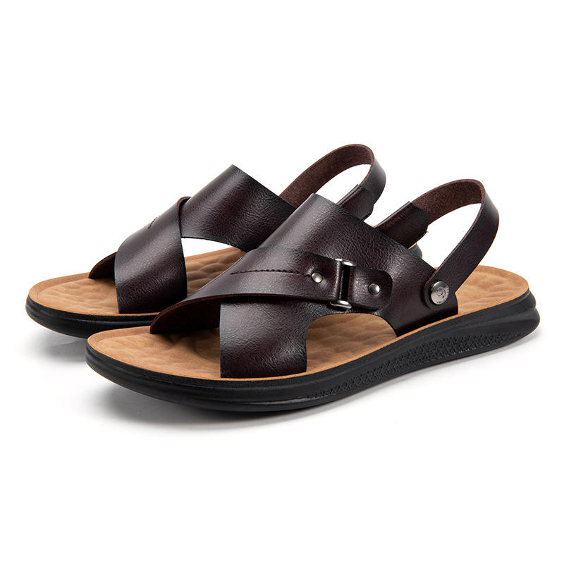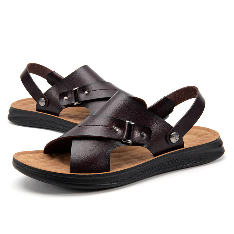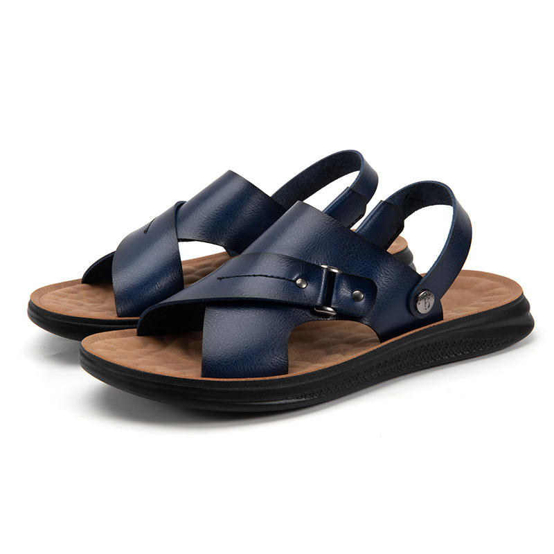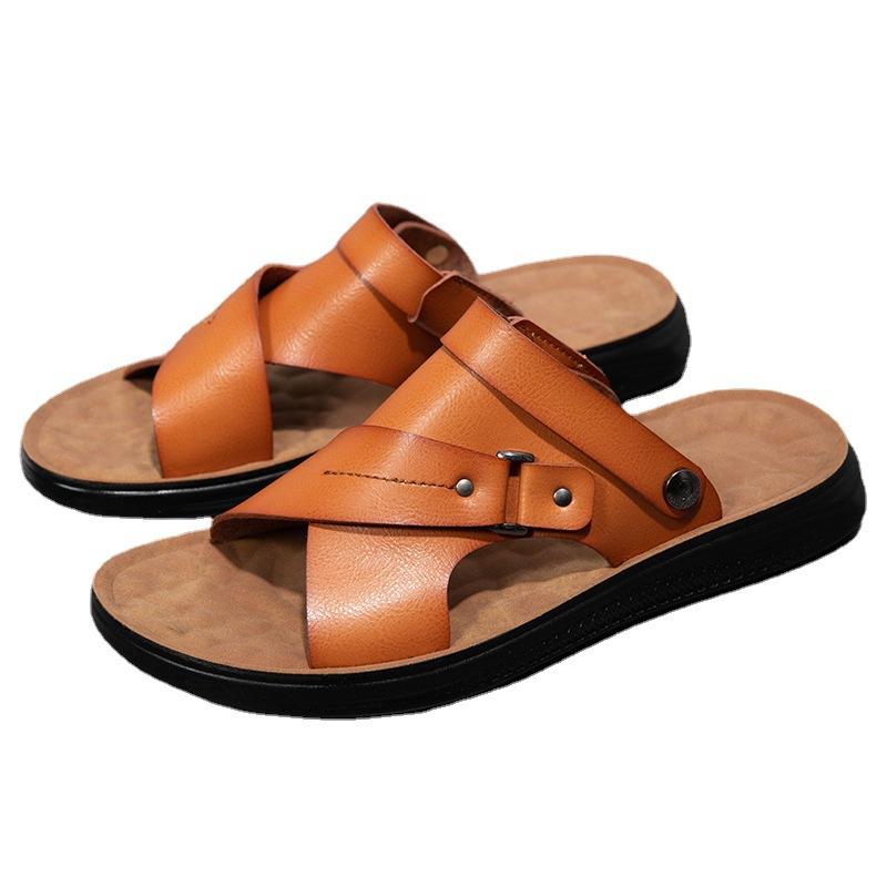 Sandali da uomo fatti a mano in vera pelle pantofole piatte da esterno a due vie uso sandali per gli uomini di alta qualità