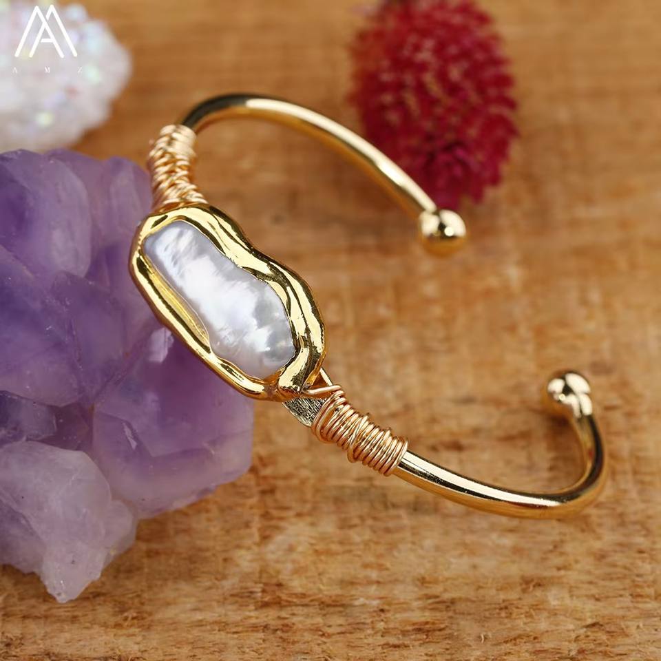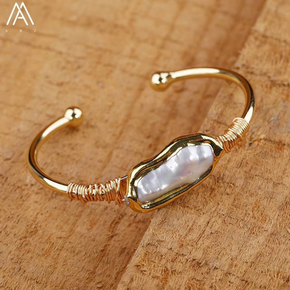 Braccialetto aperto fatto a mano per le donne alla moda perle bianche perline su filo di rame per adolescenti regalo gioielli Dropship