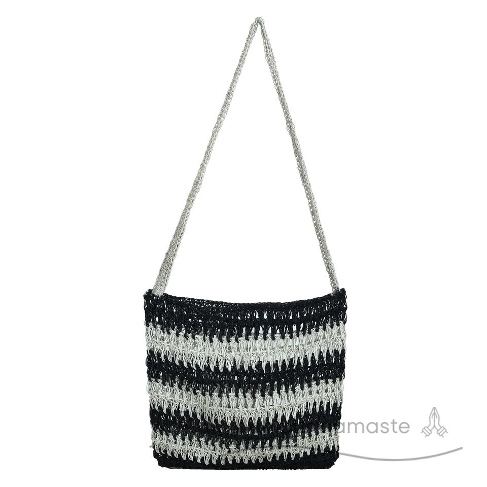 Borsa Tote fatta a mano in juta aperta nera e Beige eco-friendly mercato spiaggia uso fodera in poliestere stile bohémien all'ingrosso Canada europa