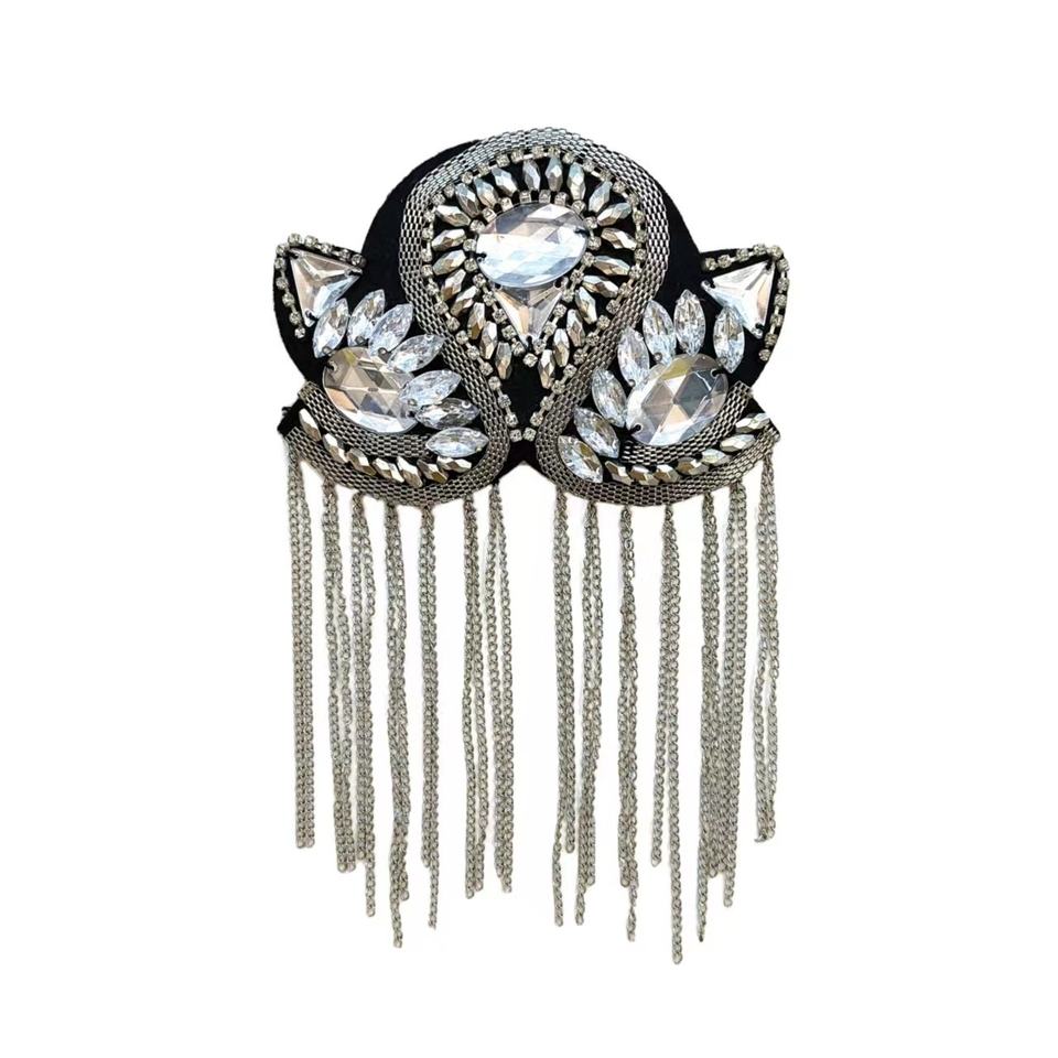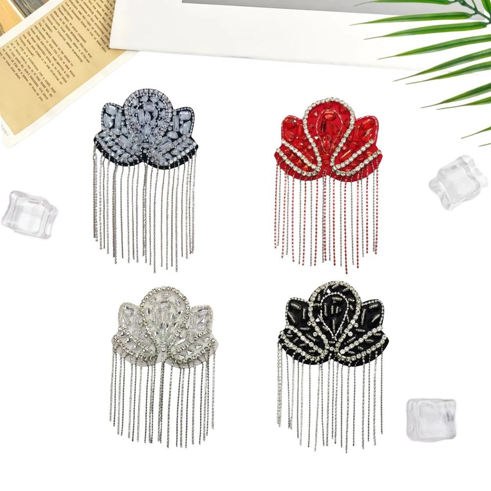 Applique Ricamata a Forma di Pentagramma con Paillettes e Nappe, Distintivo da Spalla Fatto a Mano per Abbigliamento da Palcoscenico