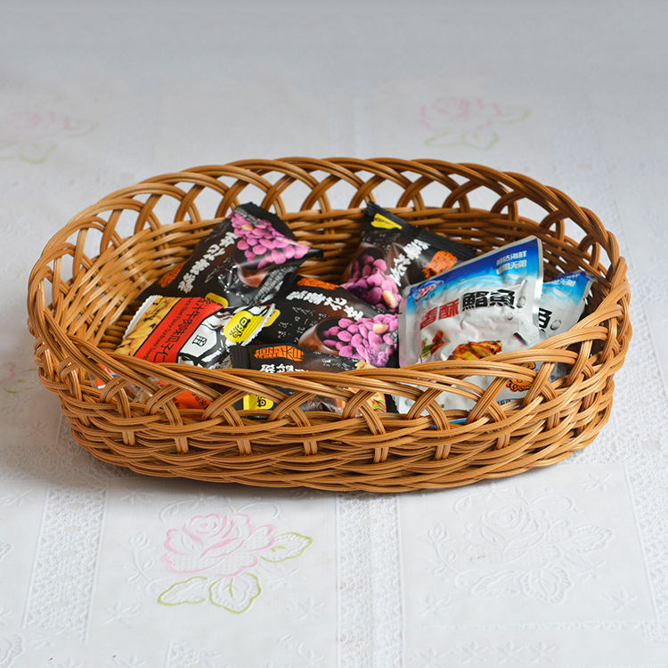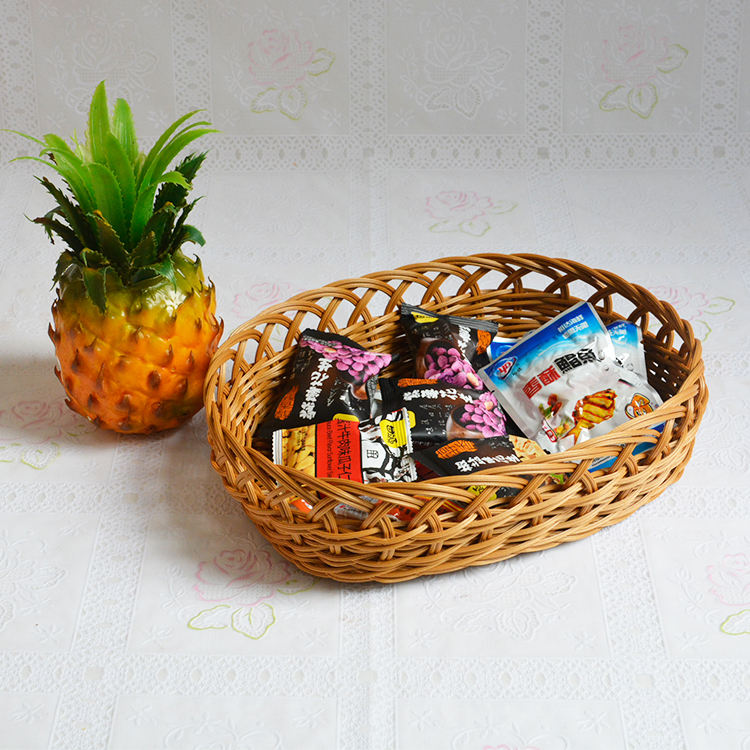 Cestino portaoggetti ovale intrecciato in plastica fatto a mano cestino per pane in Rattan PP per cibo da cucina Picnic pane articoli vari