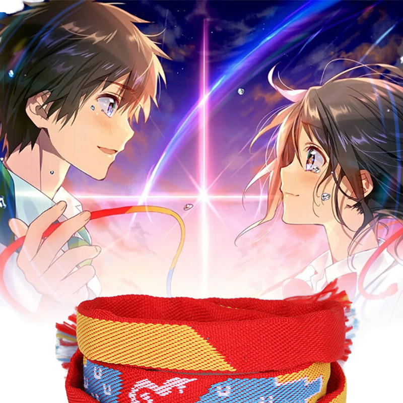 Braccialetto Kumihimo Rosso Fatto a Mano, Ispirato all'Anime Your Name, per Amanti del Film, Amicizia, Donna/Uomo, con Perle Portafortuna