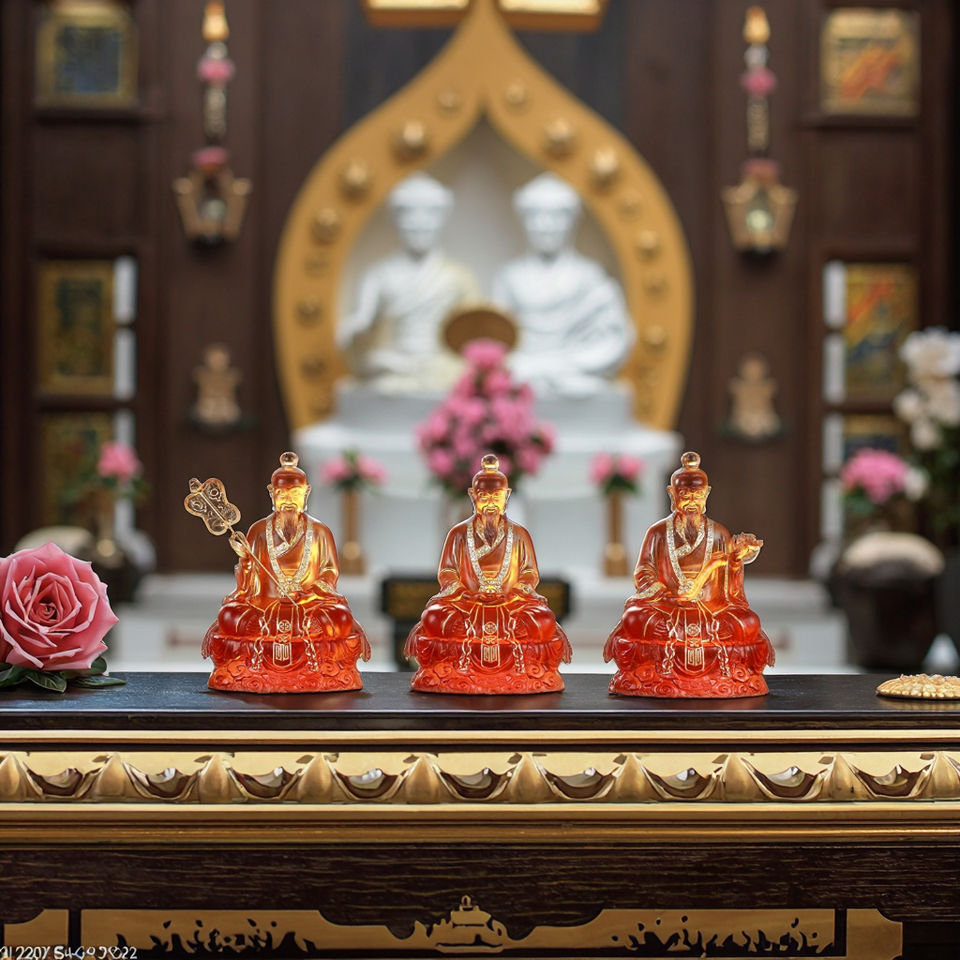 Handmade San Qing Taoist Deity Statue Liuli Crystal with Gold Accents Celestial Cloud Base Sacred Altar Sculpture