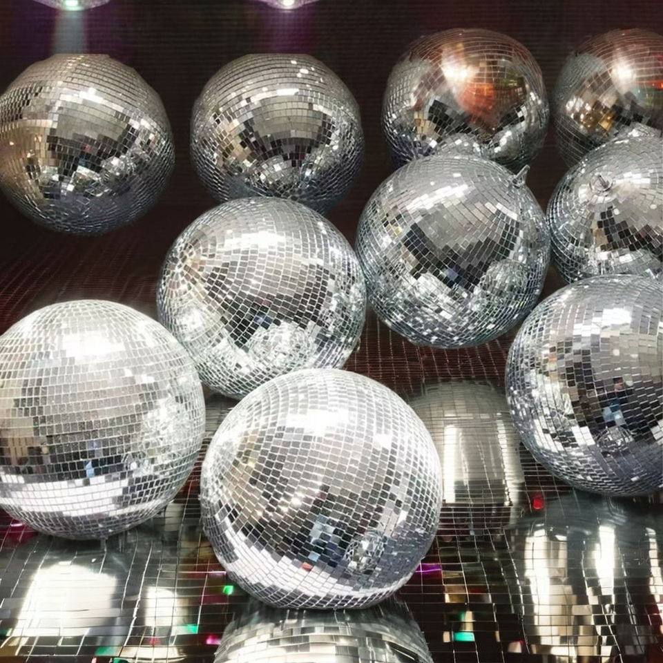 Fatto a mano in argento grande schiuma palla da discoteca per il nuovo anno decorazione festa di natale specchio infrangibile fabbrica all'ingrosso personalizzabile