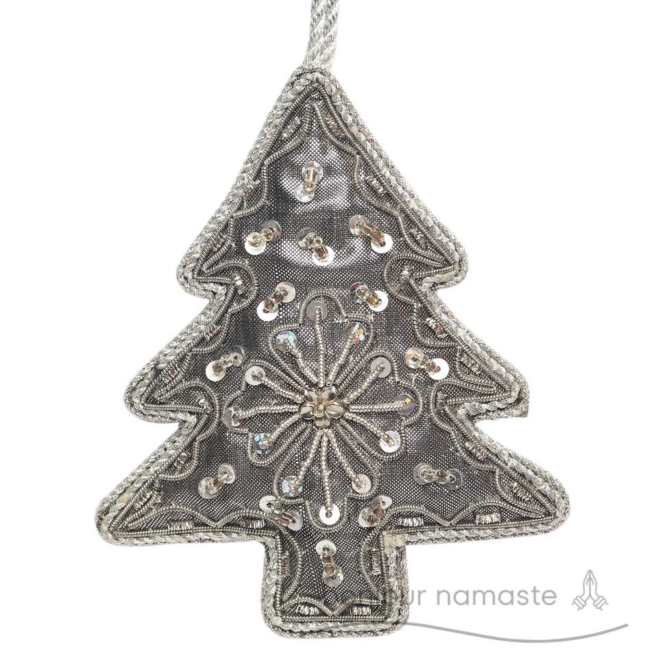 Ornamento in argento grigio fatto a mano per l'albero di natale decorazione per le vacanze ecologica da parte di donne artigiani Figurine e giocattolo