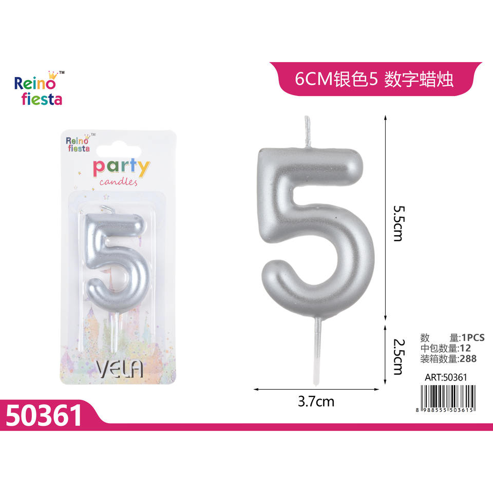 Argento fatto a mano numero 5 candela di compleanno buon compleanno bastone per la decorazione del partito per il nuovo anno pasqua Ramadan 6CM scatola di cera