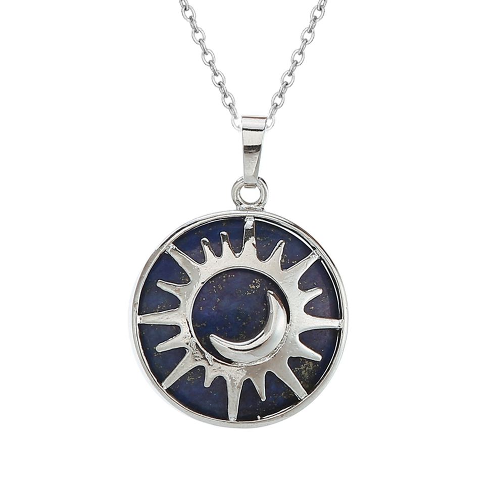 Fatti a mano In Argento Del Sole e della Luna Rotonda In Lega di Pietra Del Pendente per la Collana Fatti A Mano Pendente Della Pietra Preziosa Dei Monili di Fascino