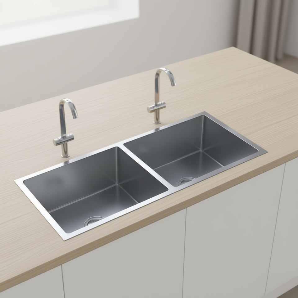 Lavello da Cucina in Acciaio Inossidabile a Doppia Vasca, Rettangolare, da Incasso o da Appoggio, Design Moderno, Facile da Pulire, Superficie Lucida