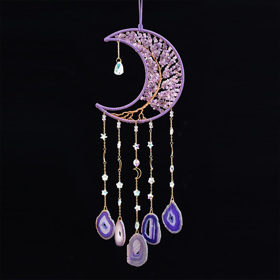 Acchiappasogni di cristallo curativo naturale per camera da letto giardino Fetta di agata fatta a mano albero della vita ametista luna Suncatcher