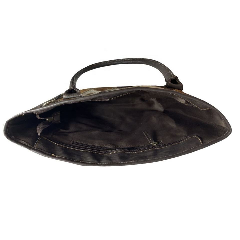 Borsa a tracolla in pelle di vacchetta con capelli tricolore fatta a mano e tricolore fornitore indiano alla moda con rivetto