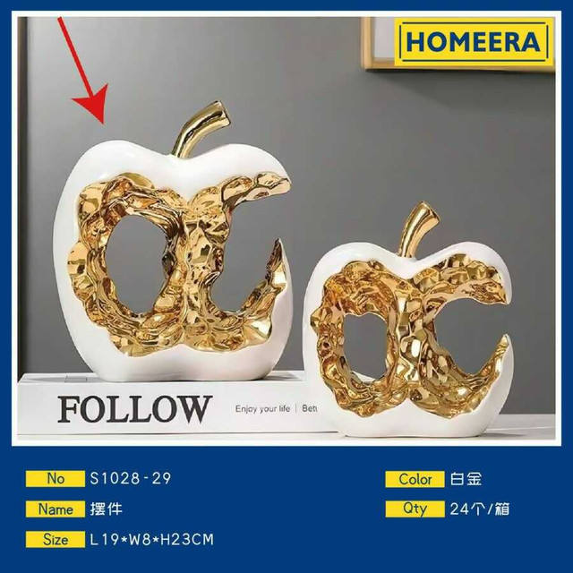 Scultura di mela in ceramica fatta a mano in oro bianco per decorazione di casa ufficio decorazione da parete in metallo arte matrimonio ornamento decorativo artigianato