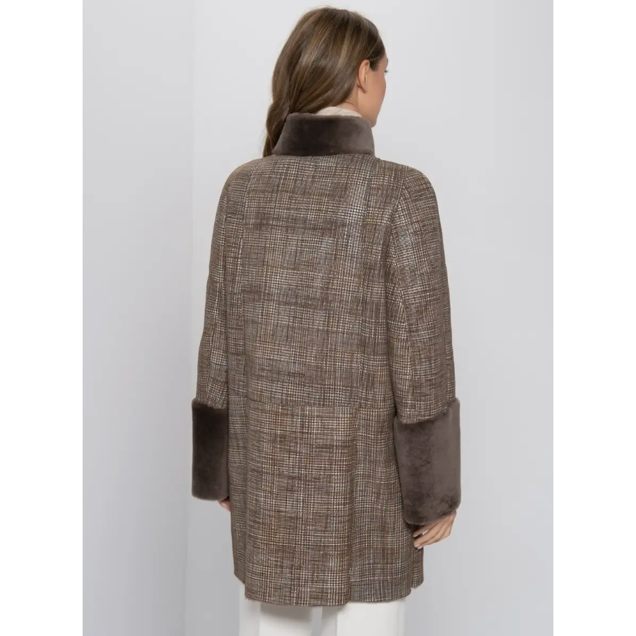 Cappotto invernale di lusso per donna fatto a mano con finitura effetto lana, outerwear in pelle shearling su misura per sofisti