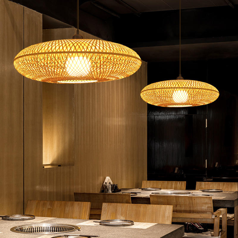 Lampada a sospensione in vimini in vimini intrecciata fatta a mano nuova lampada in Rattan naturale a sospensione lampadario per la casa ristorante