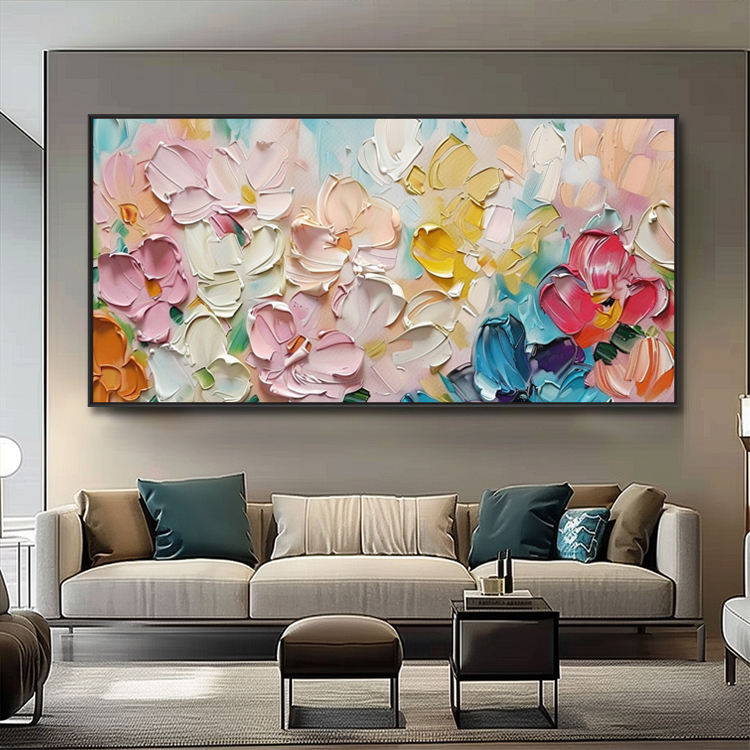 Dipinto a Mano su Tela in Stile Moderno, Arte Murale Decorativa 3D Testurizzata con Cornice, Quadri di Fiori per Soggiorno e Sala