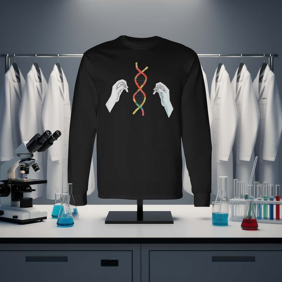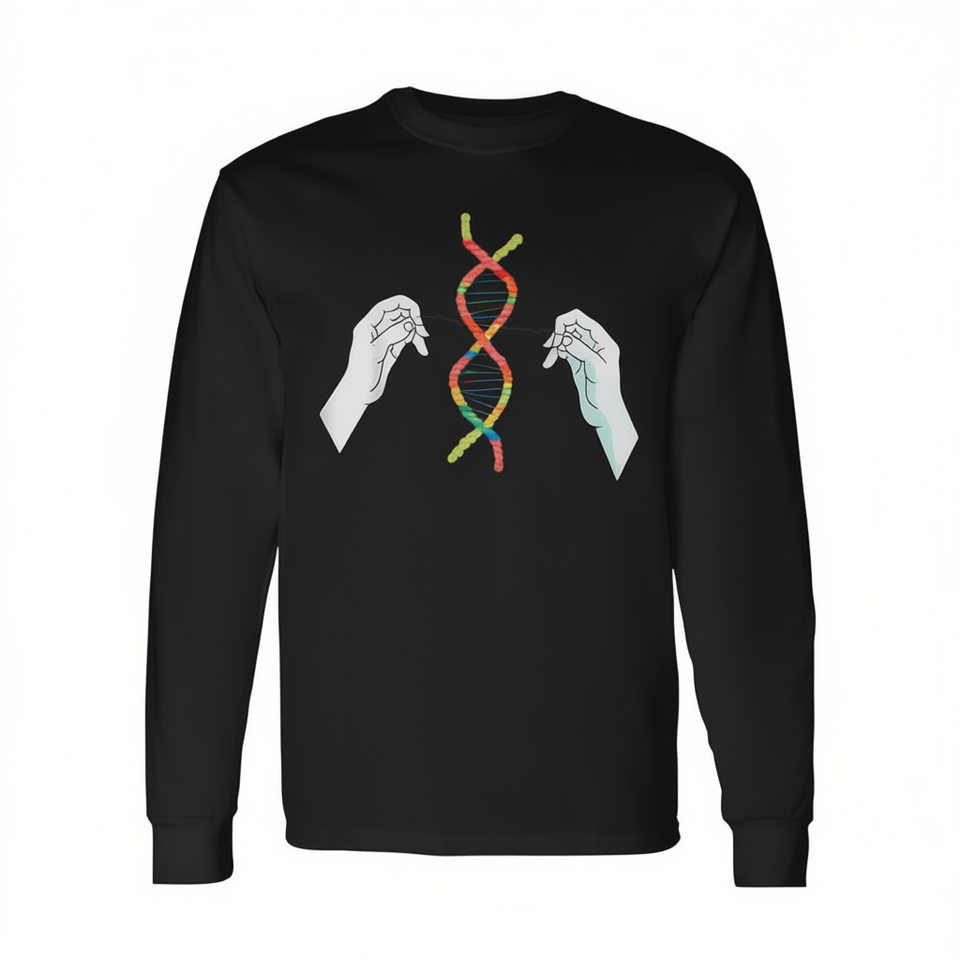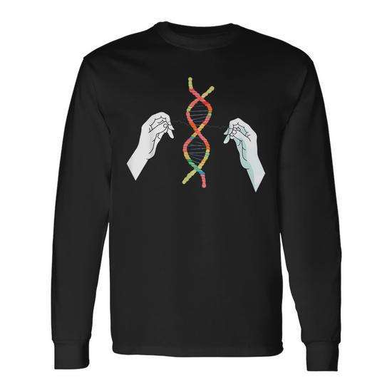 T-shirt a maniche lunghe per insegnanti di biologia con doppia elica di DNA lavorata a mano