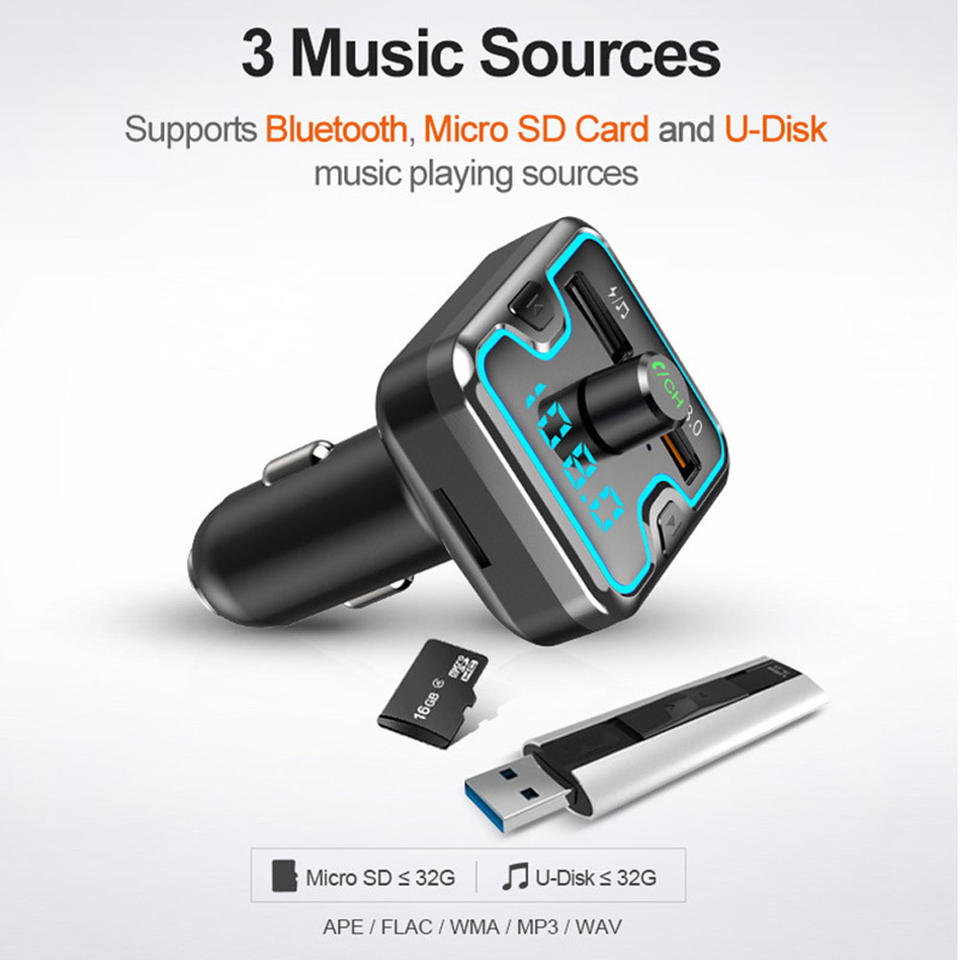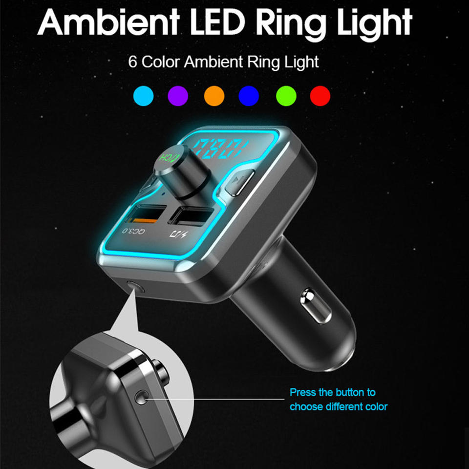 Chiamata a mani libere FM trasmettitore MP3 lettore musicale doppio USB ricarica LED retroilluminato caricatore per auto Bluetooth 5.3 ricevitore Audio