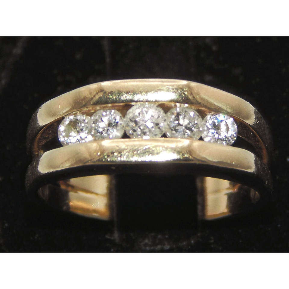 Handsome 14K Gold Men's Ring with 5 Diamonds Hip-Hop Style Statement Cluster Ring Fine Jewelry with Invisible Setting