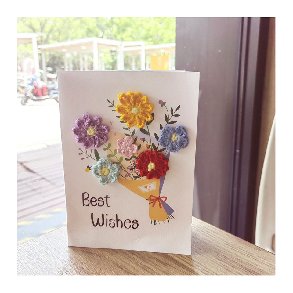 Biglietti di auguri con fiori all'uncinetto cuciti a mano carta Kraft Festival di benedizione per matrimonio compleanno carta regalo cartolina invito