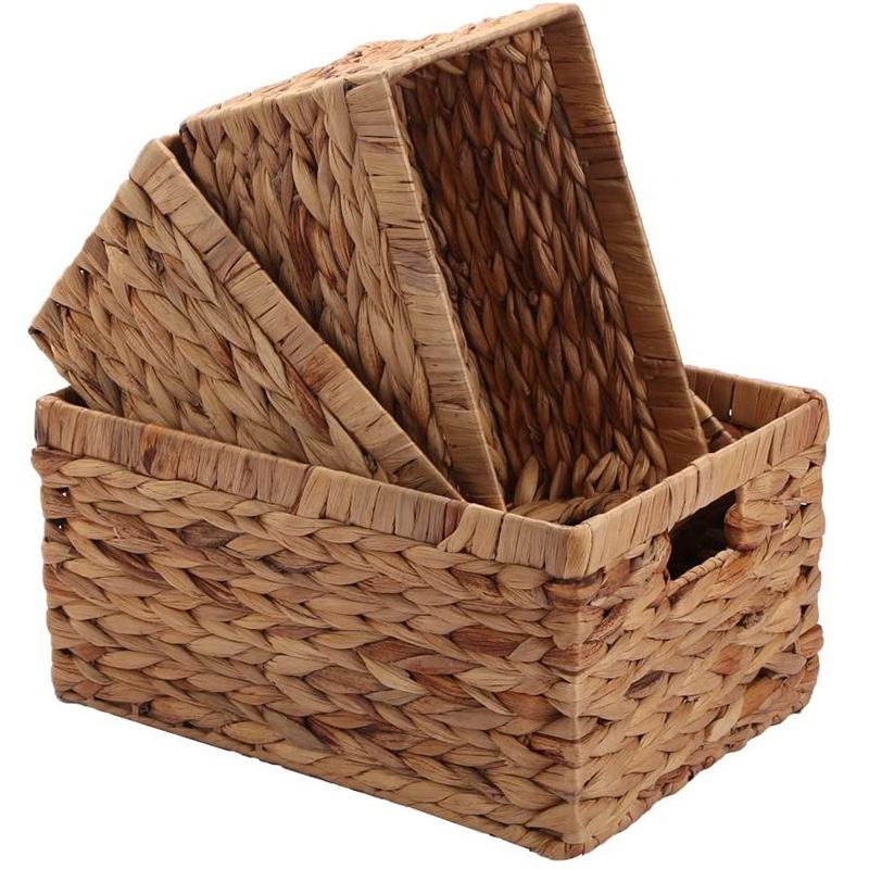 Cesto portaoggetti in giacinto d'acqua intrecciato a mano, robusto con manico integrato, per l'organizzazione domestica e per il bagno