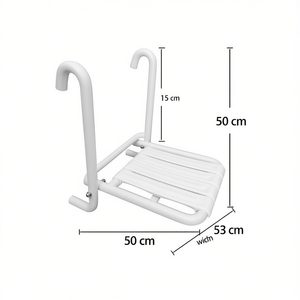 Sedile doccia sospeso, lunghezza 50 cm, larghezza 15 cm, altezza 53 cm, pieghevole per bagni