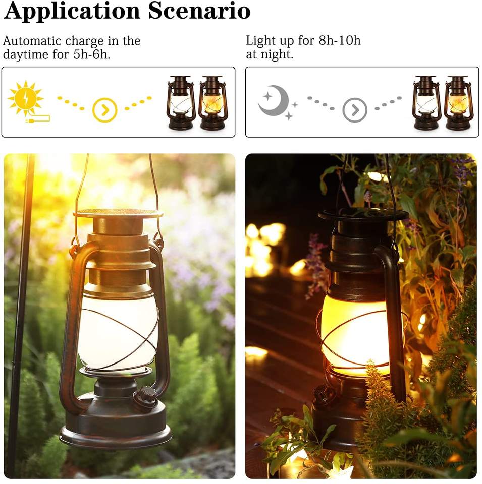 Lanterna Solare LED Hanko con Effetto Fiamma, Luce Decorativa da Giardino, Lanterna Retrò per Esterni e Campeggio