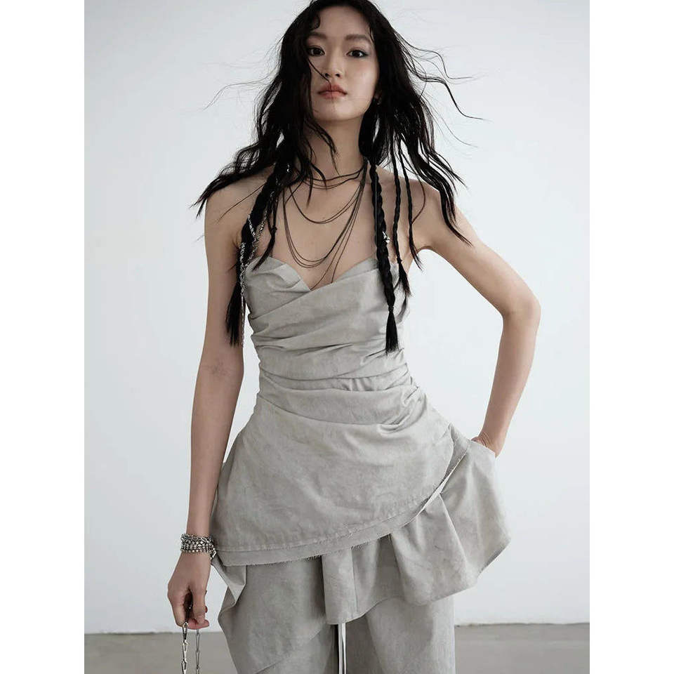 Hantuki Sexy Casual Layered Tube Top Breathable Woven Knitted Spandex Short Clothing for Summer Club Use Tank Print 2 Pieces