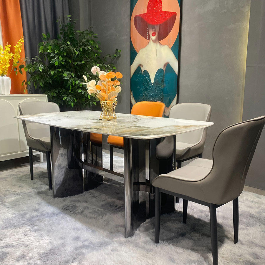 Tavolo da Pranzo Rettangolare di Lusso in Marmo Italiano Hanyee con Gambe in Acciaio Inossidabile per Hotel, Casa, Cucina e Soggiorno
