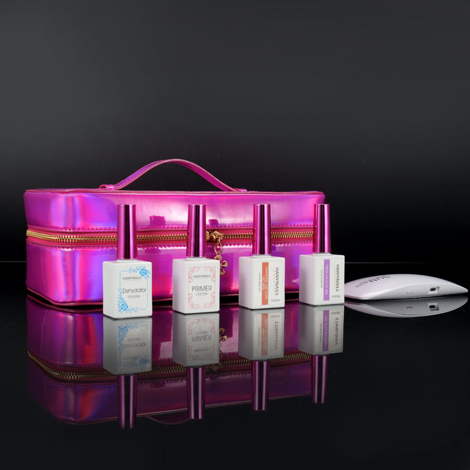 Hanyinails Wholesales Hot Sales Gel_X Nail Extension Kit Gel Tips&Nails Extend System UV Gel&Lamp Luxury Rose Gold Gel Nail Kit