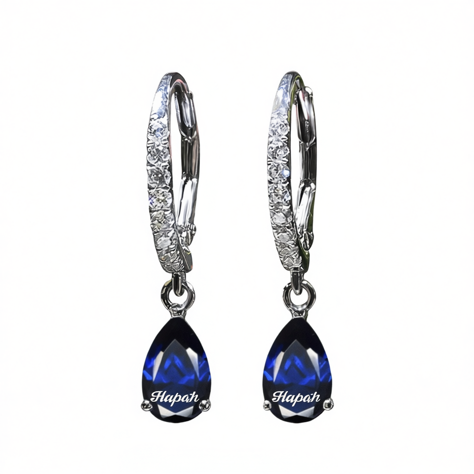 Hapah Blue Gemstone Drop Earrings 925 Silver Water Drop Claw Setting Women's Classic Everyday Wear