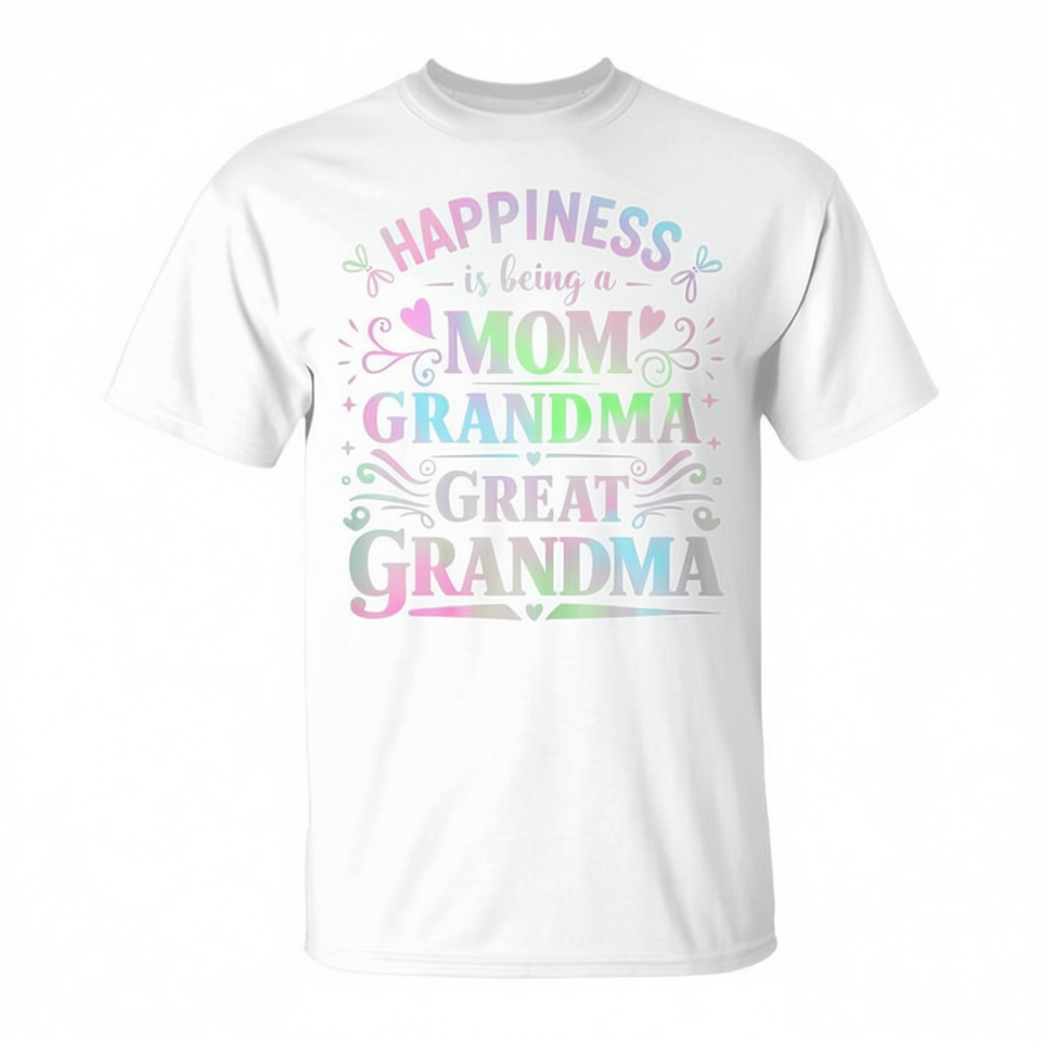 La felicità è essere mamma, nonna, bisnonna, maglietta a maniche corte, girocollo, unisex, per adulti, per riunioni di famiglia
