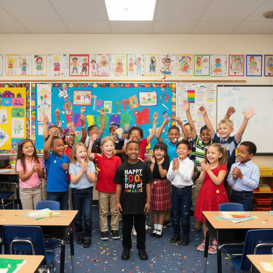 Maglietta per il 100° giorno della seconda elementare, maglietta per la festa scolastica della seconda elementare