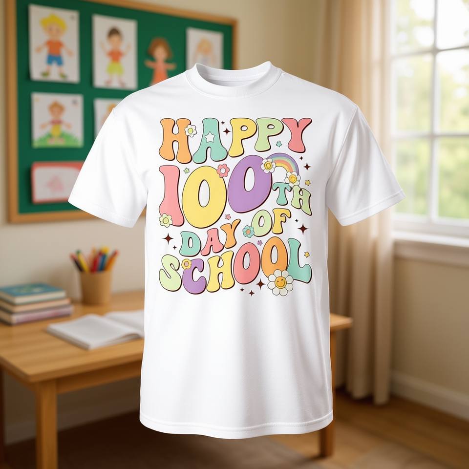 Happy 100th Day Of School T-Shirt Groovy Design For Teachers