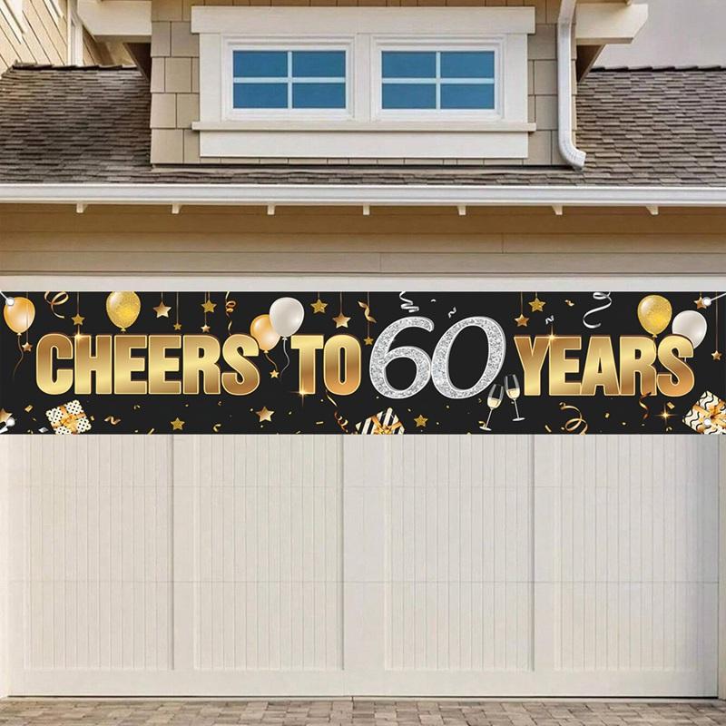 Felice sessantesimo compleanno Banner segno grande tessuto felice cortile segno festa sfondo sfondo per feste di compleanno decorazioni