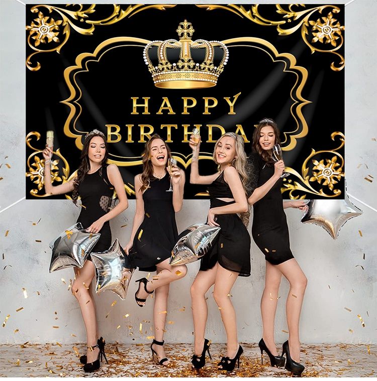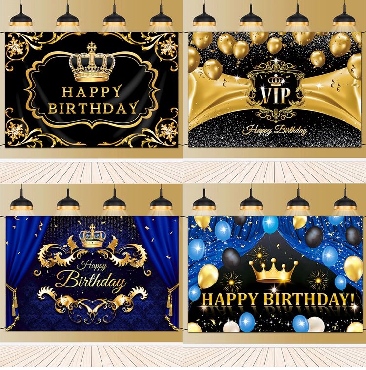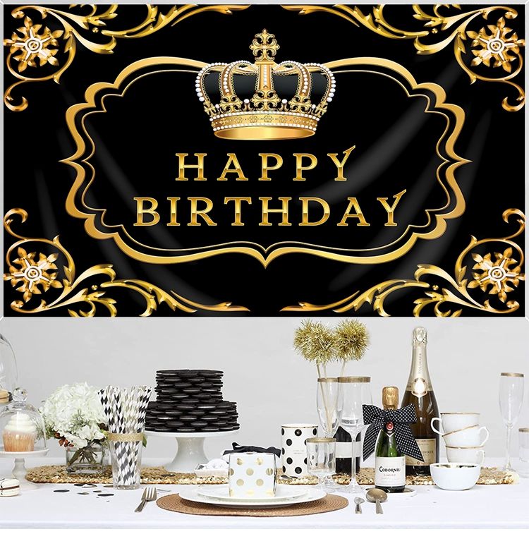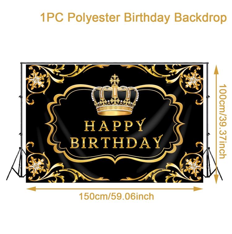 Buon compleanno sfondo Royal Crown Prince Gold Glitter Photo Background tenda dorata personalizza nome forniture per la decorazione della festa