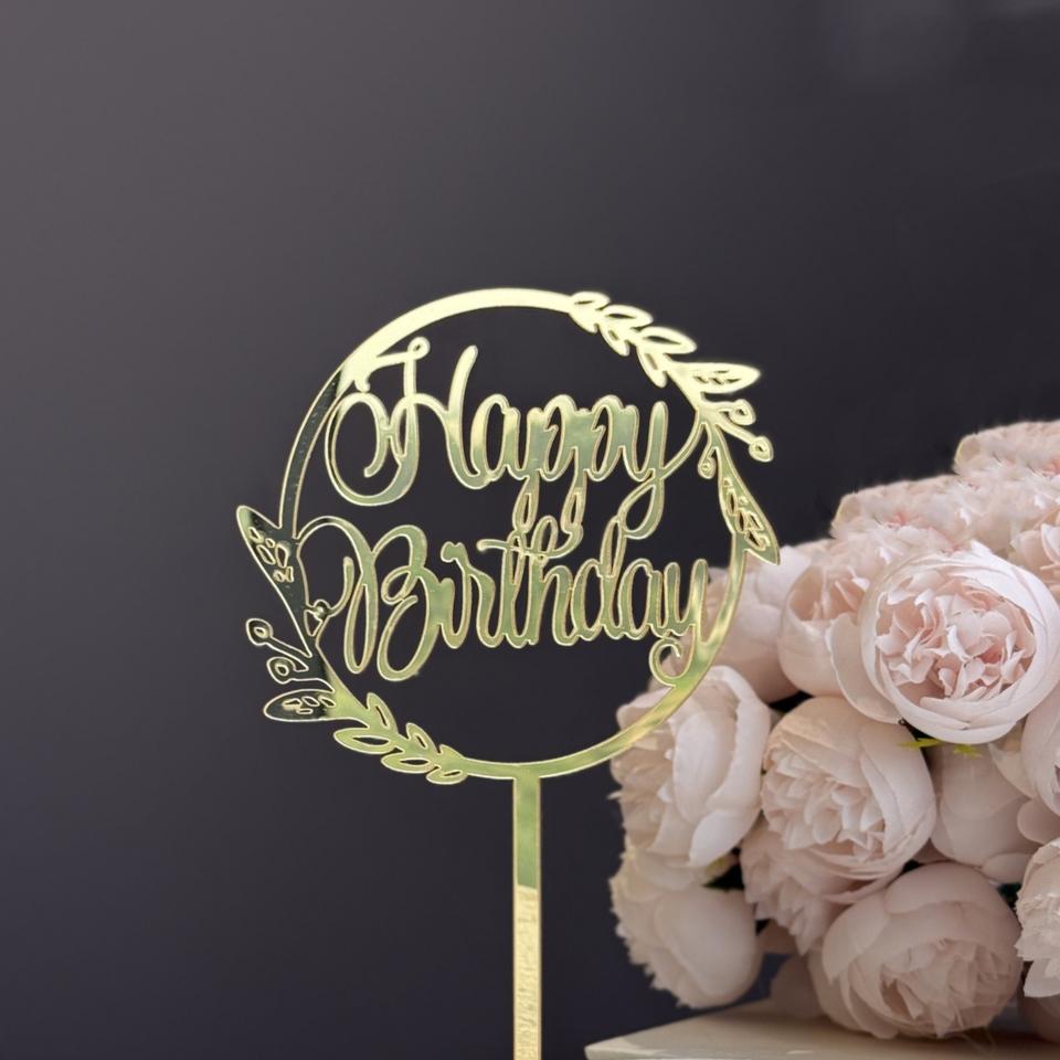 Decorazione per Torta Ecologica Moderna in Oro 'Buon Compleanno' per Feste e Matrimoni