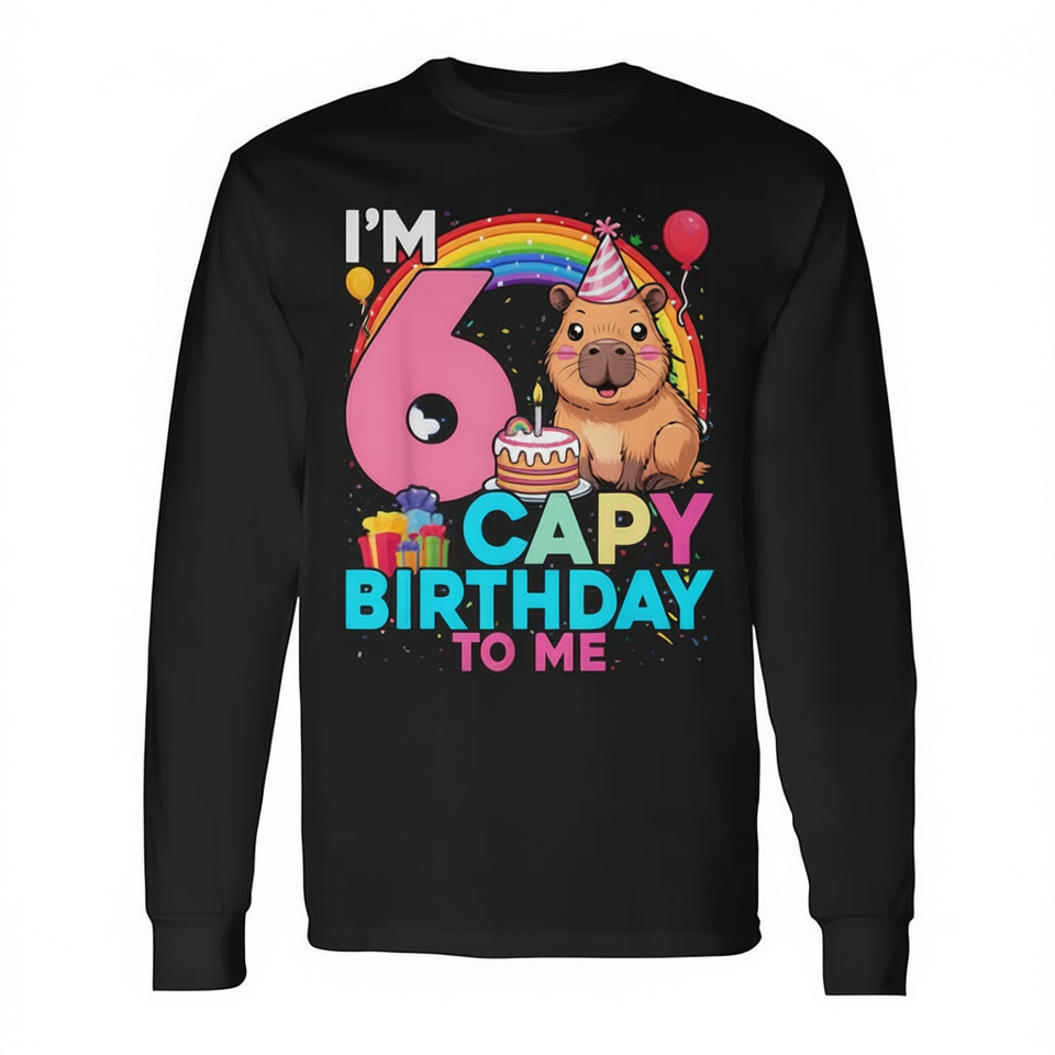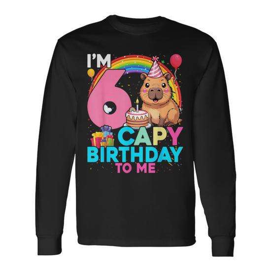Maglietta a Maniche Lunghe Personalizzata 'Buon Compleanno' per il 6° Compleanno, Tema Capibara, Regalo Promozionale per Bambini di 6 Anni